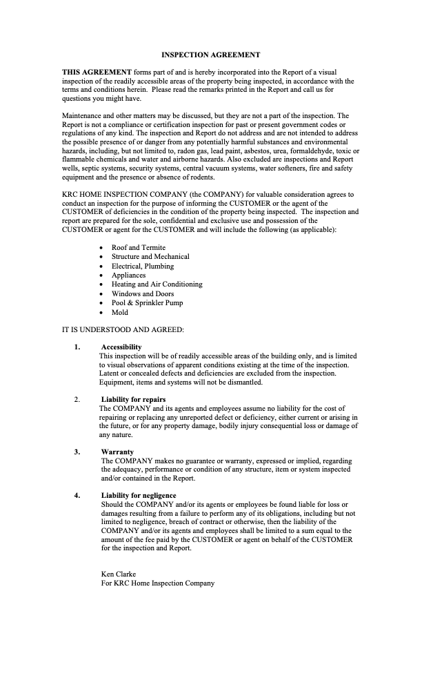 Sample Report & Inspection Agreement